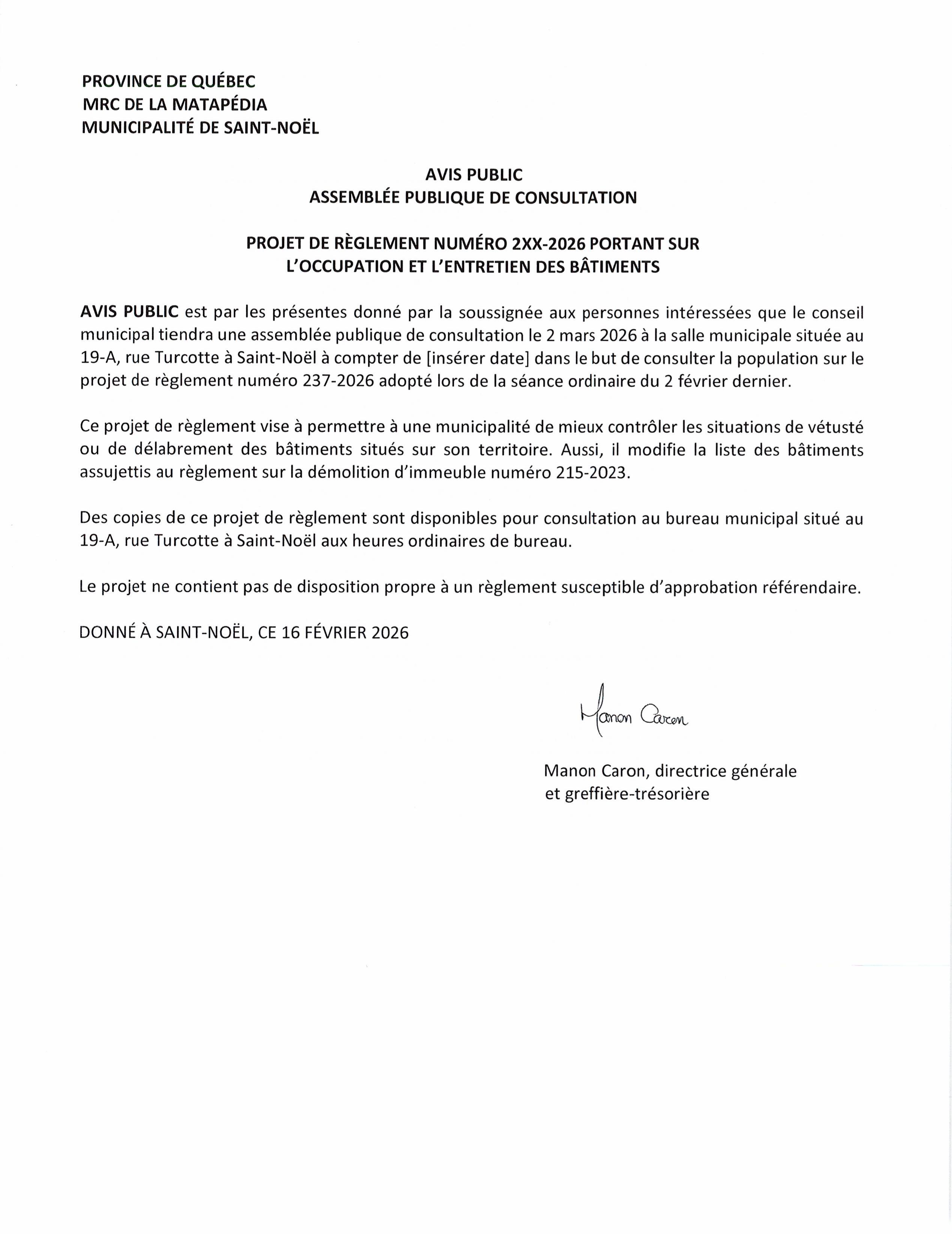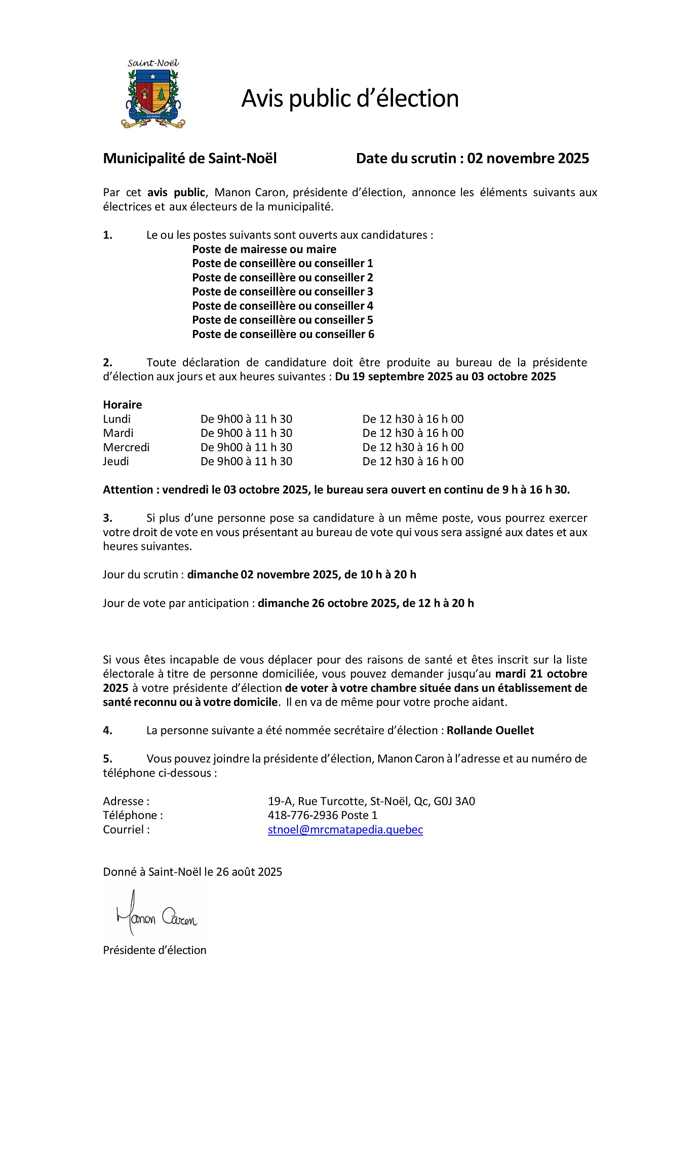 Portrait de la municipalité de St-Noël 2016